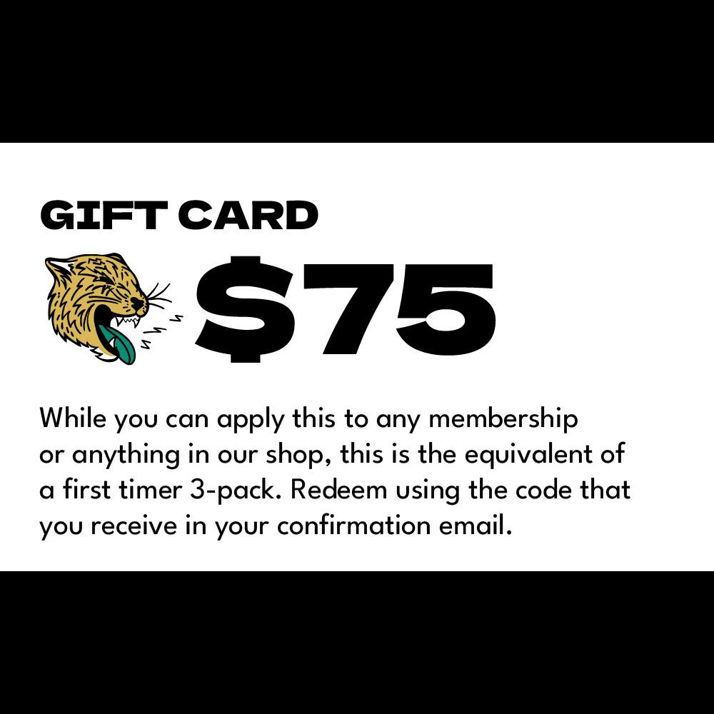 This gift certificate is equal in amount to a first-timer 3-pack of entries, but could also be applied to any type of membership, drop in pass, or even for products in our retail center. Redeem when checking out by using the discount code you receive upon purchase.